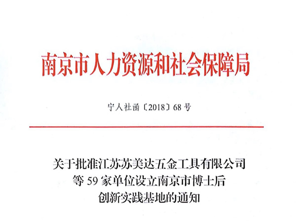 近日,大千生態環境集團股份有限公司(以下簡稱:大千生態環境集團)收到南京市人力資源和社會保障局下發的《關于批準江蘇蘇美達五金工具有限公司等59家單位設立南京市博士后創新實踐基地的通知》(寧人社函【2018】68號),獲批設立南京市博士后創新實踐基地(市級“準博站”),并由南...
